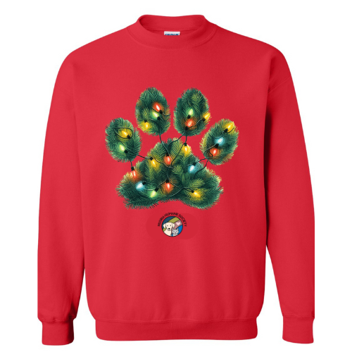 Red Crewneck Sweatshirt with Christmas Tree Paw Print! - Peoria Humane Society